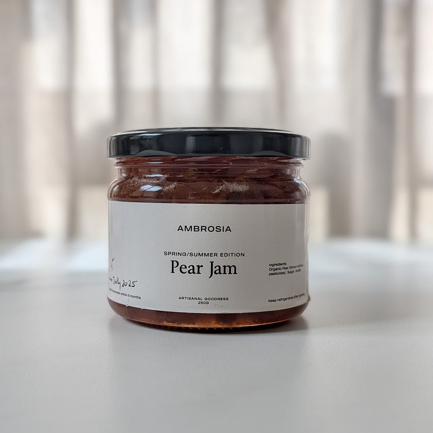 Delicately sweet jam made from handpicked organic pears, offering a smooth and elegant flavor.
